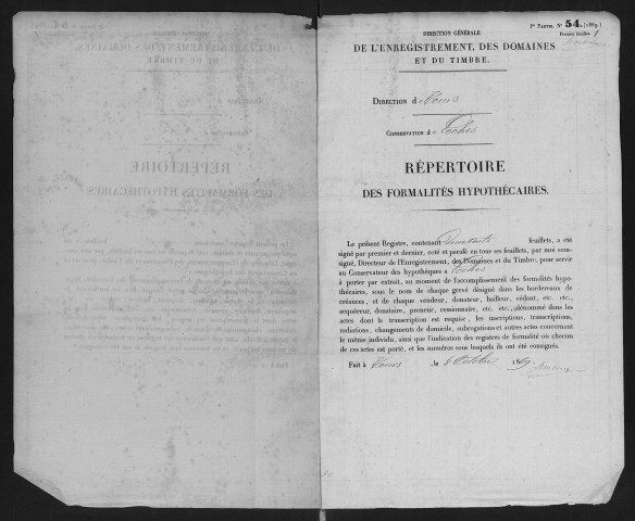 À Loches, les registres d'inscriptions et de transcriptions, jusqu'en 1921, ne sont pas strictement chronologiques pour les mêmes raisons que dans les autres conservations, à savoir l'ouverture et la tenue de plusieurs registres en même temps. Notons toutefois que pour les registres de transcriptions, la conservation des hypothèques de Loches, en 1921, a repris la numérotation d'origine au numéro 1. On a donc deux séries de registres de transcription, une série numérotée de 1 à 2096, qui couvre la période de l'an VII à 1921, et une autre série numérotée de 1 à 798 qui va de 1921 à 1955.
