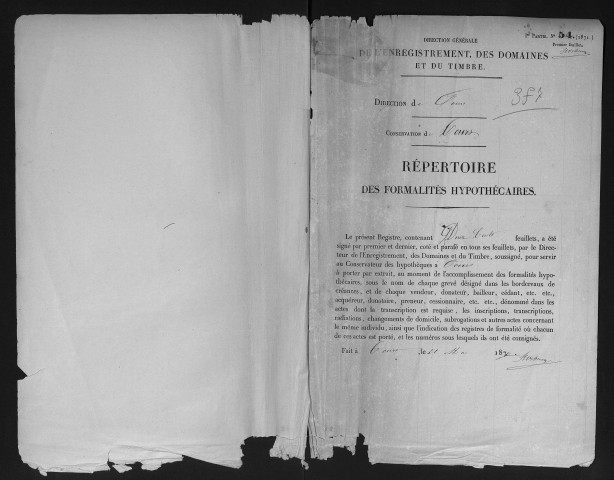 (4 Q 5/1016-1018). Puis commence la longue série des inscriptions numérotée à partir du numéro 1. Notons que le premier volume numéroté 1 est en déficit au moment de la rédaction du répertoire de la sous-série 4 Q. Il devait couvrir la période du 3 nivôse an IV au 26 brumaire an VII, comme l'indique l'inventaire des registres de la conservation de Tours conservé sous la cote 4 Q 5/1.