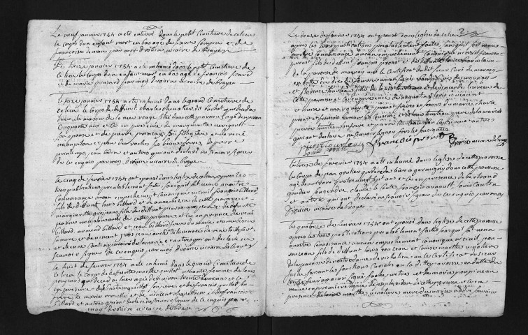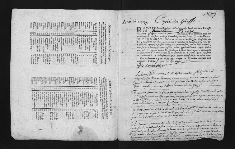 Collection du greffe. Baptêmes, mariages, sépultures, 1754