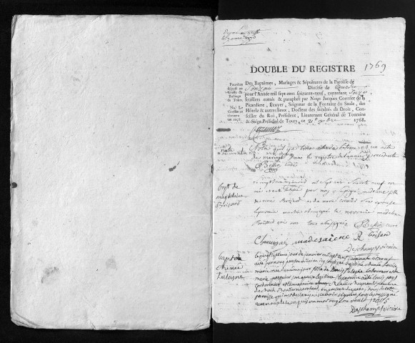 Collection du greffe. Baptêmes, mariages, sépultures, 1769