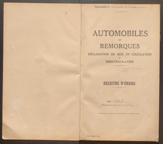 - 1307W : registres correspondants aux immatriculations antérieures à 1950 (HD)