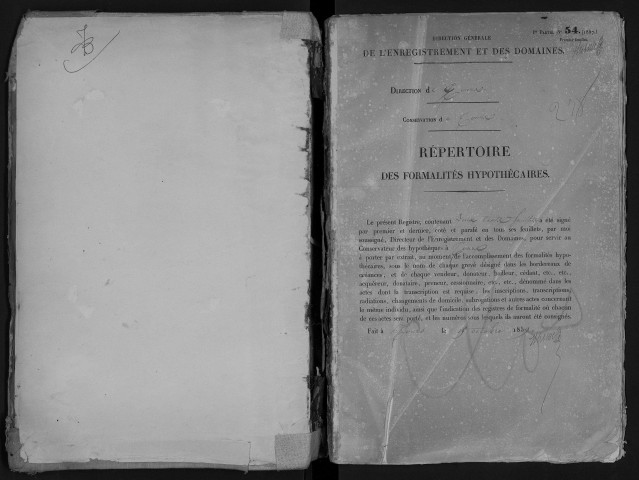 (4 Q 5/1016-1018). Puis commence la longue série des inscriptions numérotée à partir du numéro 1. Notons que le premier volume numéroté 1 est en déficit au moment de la rédaction du répertoire de la sous-série 4 Q. Il devait couvrir la période du 3 nivôse an IV au 26 brumaire an VII, comme l'indique l'inventaire des registres de la conservation de Tours conservé sous la cote 4 Q 5/1.