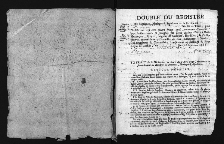 Collection du greffe. Baptêmes, mariages, sépultures, 1789
