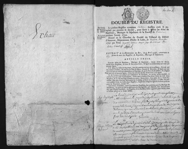 Collection du greffe. Baptêmes, mariages, sépultures, 1792