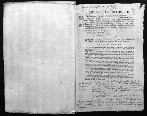 Collection du greffe. Baptêmes, mariages, sépultures, 1787