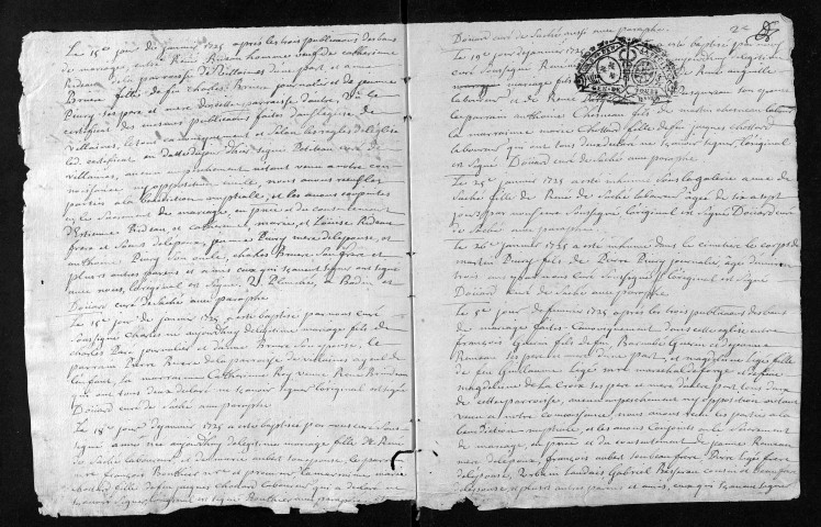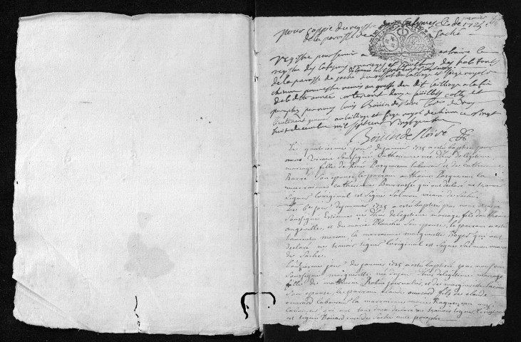 Collection du greffe. Baptêmes, mariages, sépultures, 1725-1726 - Les années 1722-1724 sont lacunaires dans cette collection