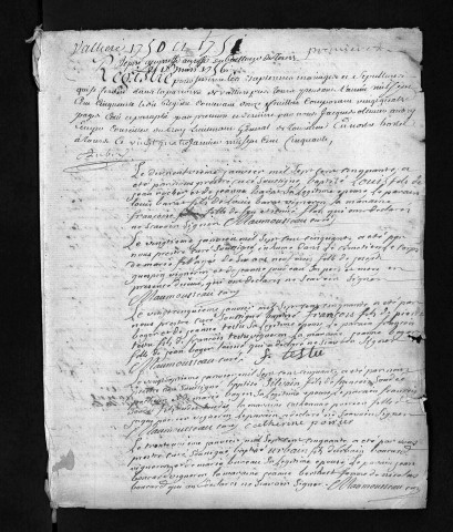 Collection du greffe. Baptêmes, mariages, sépultures, 1750-1752