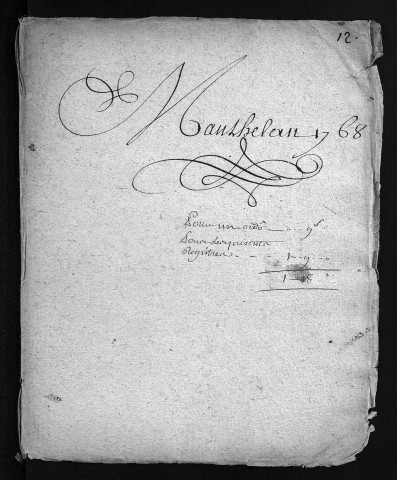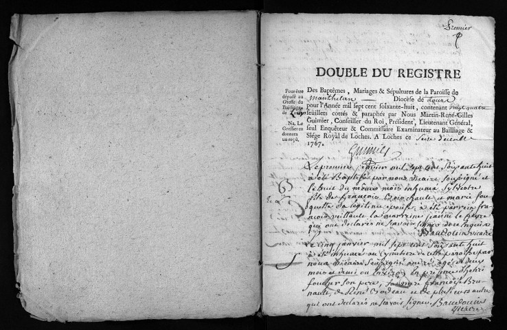 Collection du greffe. Baptêmes, mariages, sépultures, 1768