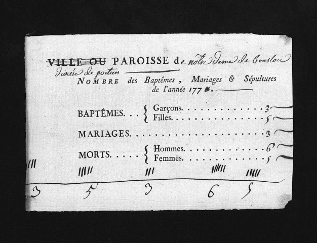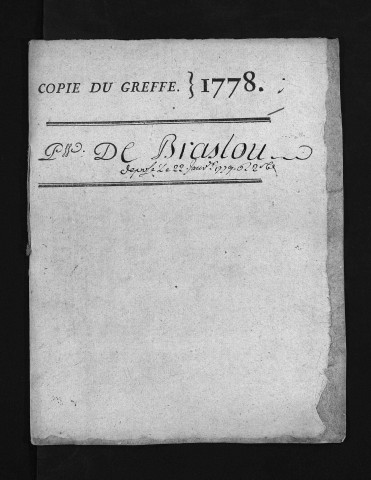 Collection du greffe. Baptêmes, mariages, sépultures, 1778