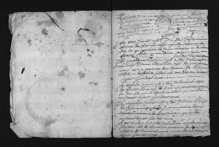 Collection du greffe. Baptêmes, mariages, sépultures, 1751