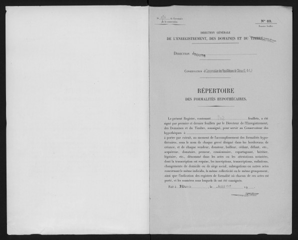 Si d'autres registres sont manquants, c'est parce qu'ils ne sont pas parvenus jusqu'à nous. C'est le cas, pour la conservation de Chinon, des huit premiers registres des inscriptions et du premier registre des transcriptions, et pour la conservation de Loches des cinq premiers registres des inscriptions.