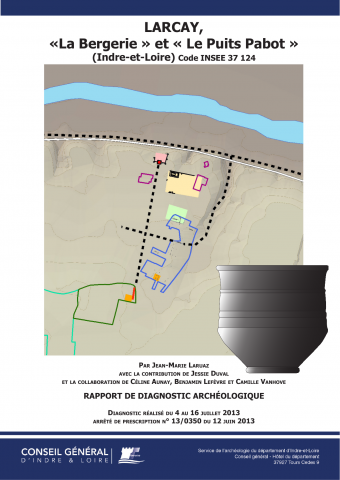 Le diagnostic réalisé à Larçay, en juillet 2013, aux lieux-dits la « Bergerie » et le « Puits Pabot » couvrait une superficie de 5,4 ha. Il a été mené à l’occasion d’un projet d’aménagement immobilier porté par la société Val Touraine Habitat. Il constituait l’opportunité d’appréhender l’environnement d’un des édifices gallo-romains les mieux conservés du département, le castellum. La présence d’un enclos daté de la période gauloise, appartenant au rang le plus élevé de la hiérarchie des habitats de cette période en Touraine, a notamment été mise en évidence.