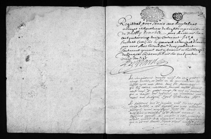 Collection du greffe. Baptêmes, mariages, sépultures, 1692