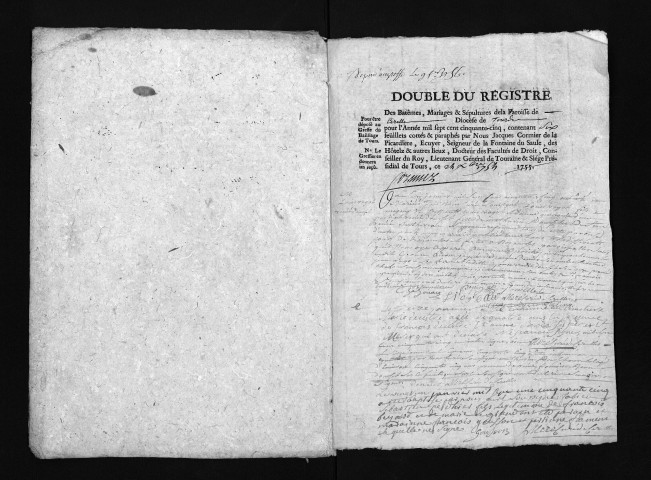 Collection du greffe. Baptêmes, mariages, sépultures, 1755