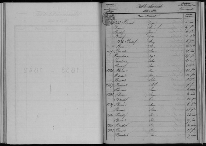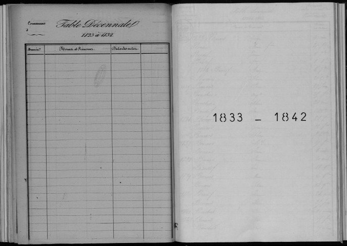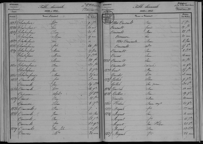 Tables décennales de l'état civil numérisées