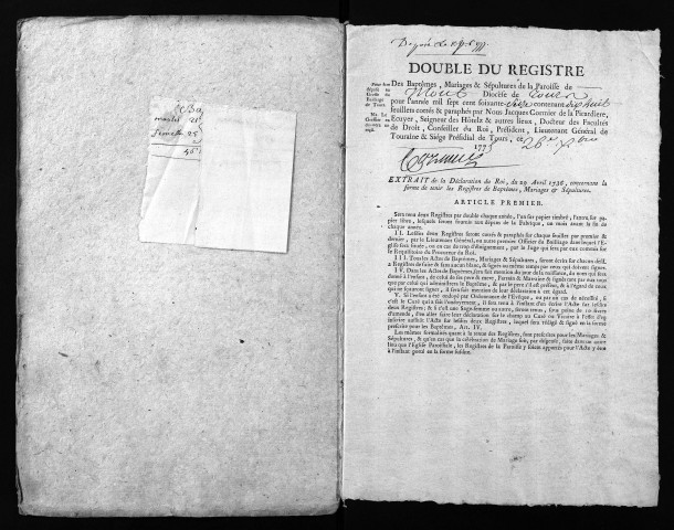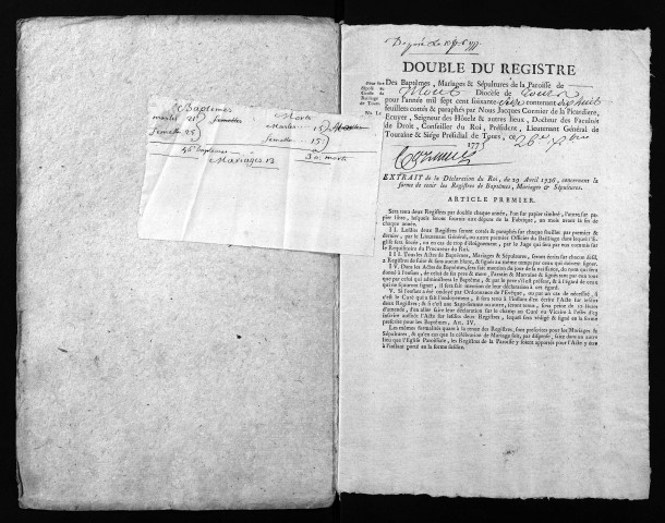 Collection du greffe. Baptêmes, mariages, sépultures, 1776