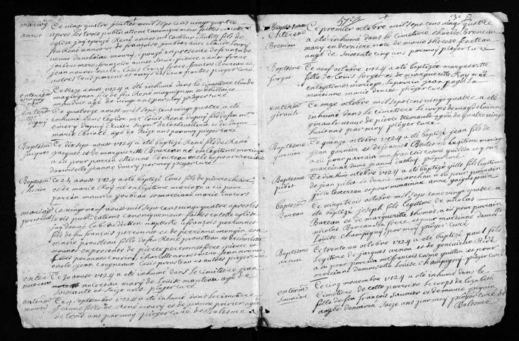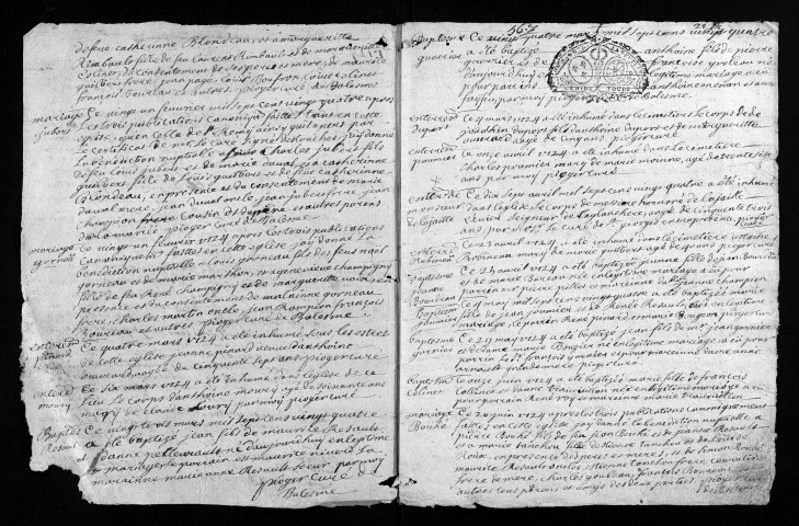 Collection du greffe. Baptêmes, mariages, sépultures, 1724
