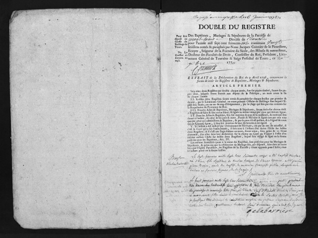 Collection du greffe. Baptêmes, mariages, sépultures, 1771