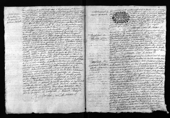 Collection du greffe. Baptêmes, mariages, sépultures, 1689