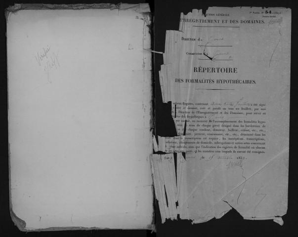 (4 Q 5/1016-1018). Puis commence la longue série des inscriptions numérotée à partir du numéro 1. Notons que le premier volume numéroté 1 est en déficit au moment de la rédaction du répertoire de la sous-série 4 Q. Il devait couvrir la période du 3 nivôse an IV au 26 brumaire an VII, comme l'indique l'inventaire des registres de la conservation de Tours conservé sous la cote 4 Q 5/1.