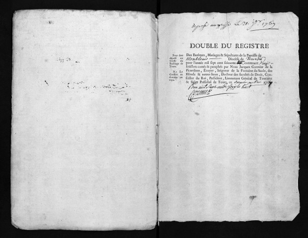 Collection du greffe. Baptêmes, mariages, sépultures, 1768
