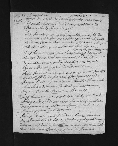 Collection du greffe. Baptêmes, mariages, sépultures, 1705