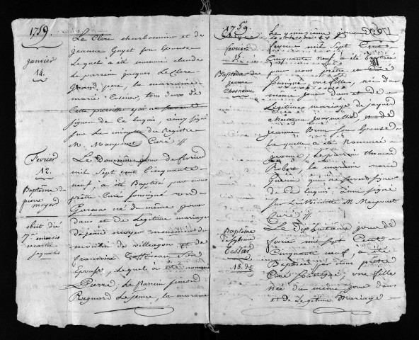 Collection du greffe. Baptêmes, mariages, sépultures, 1759