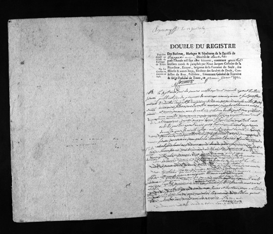 Collection du greffe. Baptêmes, mariages, sépultures, 1760