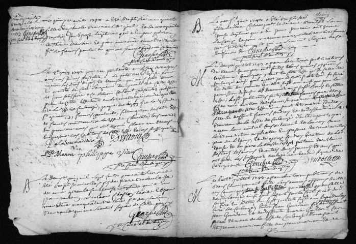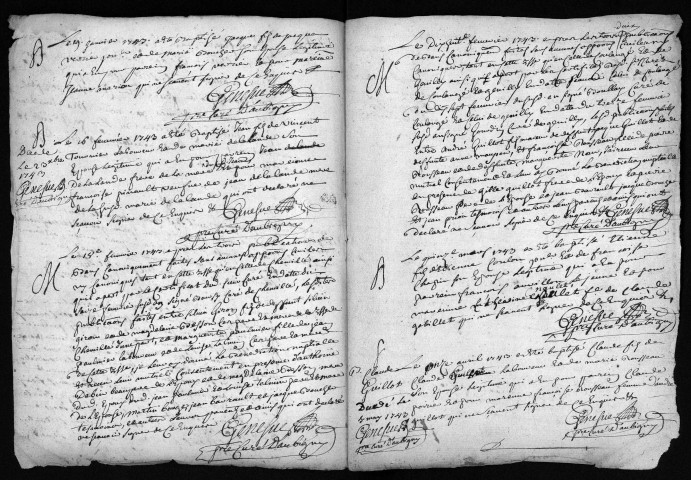 Collection du greffe. Baptêmes, mariages, sépultures, 1743