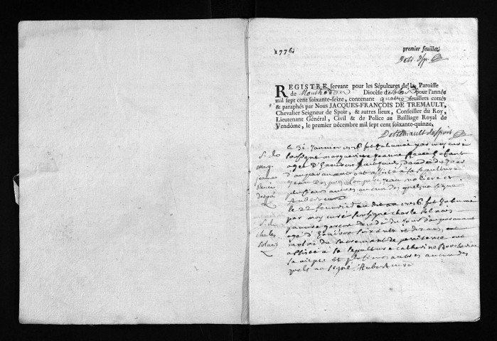 Collection du greffe. Sépultures, 1776