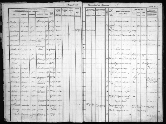 En 1865, la plupart des tables existantes furent supprimées et remplacées par le Répertoire général et son complément naturel, les bulletins mobiles. Seules subsistèrent les tables des successions et absences et celles des baux à ferme et à loyer, ces dernières étant remplacées à leur tour en 1872 par les tables des baux écrits (il n'empêche que l'on en trouve dès 1871).