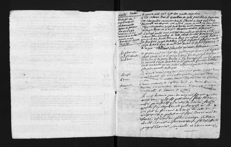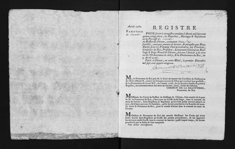 Collection du greffe. Baptêmes, mariages, sépultures, 1782