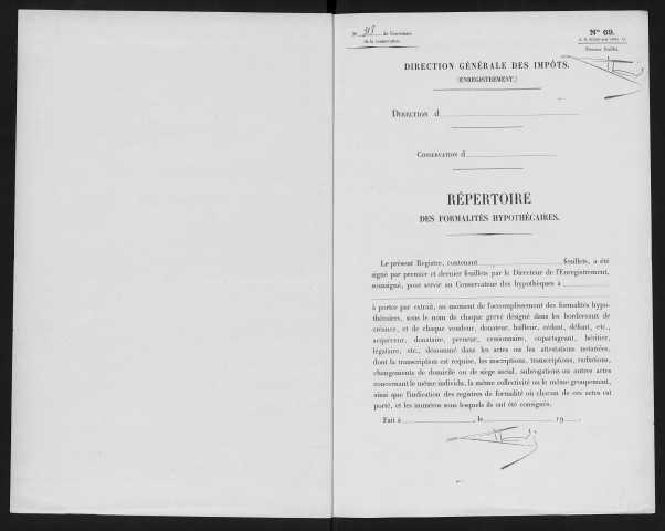 • Registre de remise des bordereaux à inscrire et des actes de mutation à transcrire. Ces registres renvoyaient aux inscriptions, aux registres de recettes des droits d'inscription, aux transcriptions, aux registres du droit d'hypothèque sur la transcription des actes de mutation.