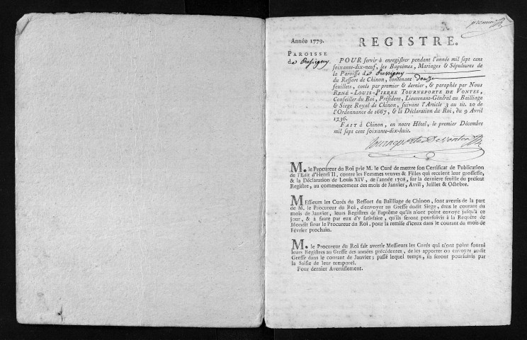 Collection du greffe. Baptêmes, mariages, sépultures, 1779