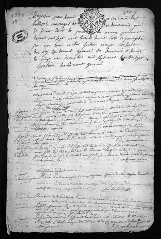 Collection du greffe. Baptêmes, mariages, sépultures, 1738