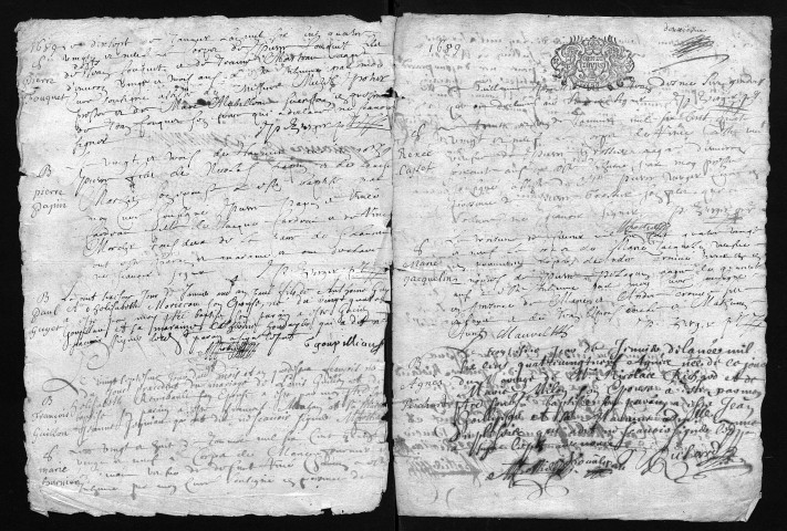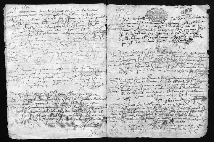 Collection communale. Baptêmes, mariages, sépultures, 1689